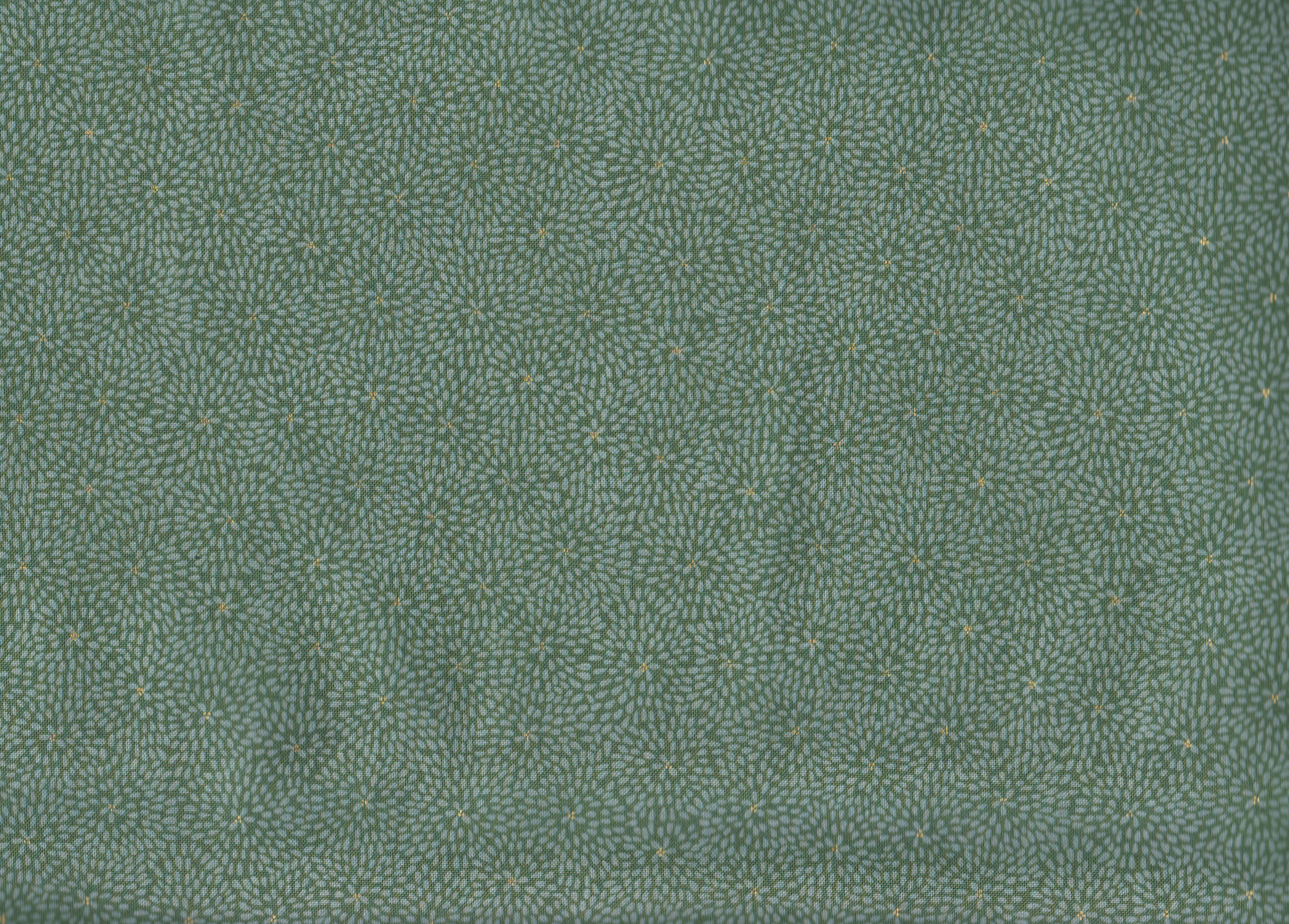 Patchworkstoff in Grün mit dezentem Golddruck.