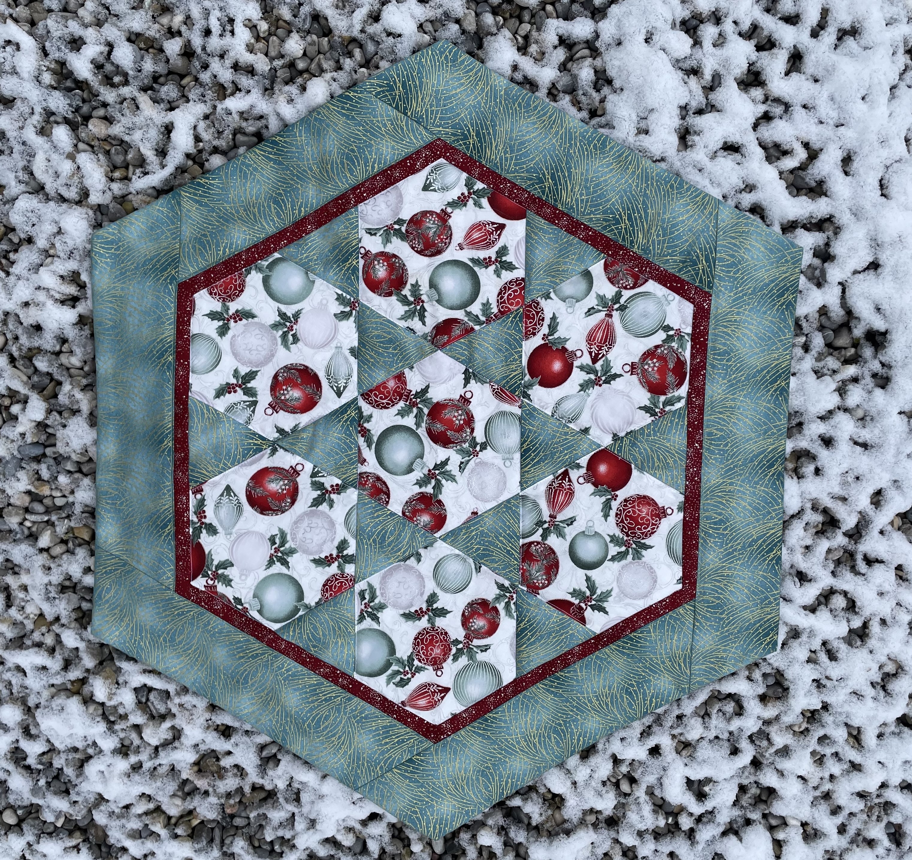 Materialpackung für Mitteldecke "Weihnachtszauber" eine elegante Decke für Ihren Tisch in der Weihnachtszeit. Größe 61 x 71 cm. Im Set alle Stoffe, Vlies und Rückseite und Anleitung sind enthalten.