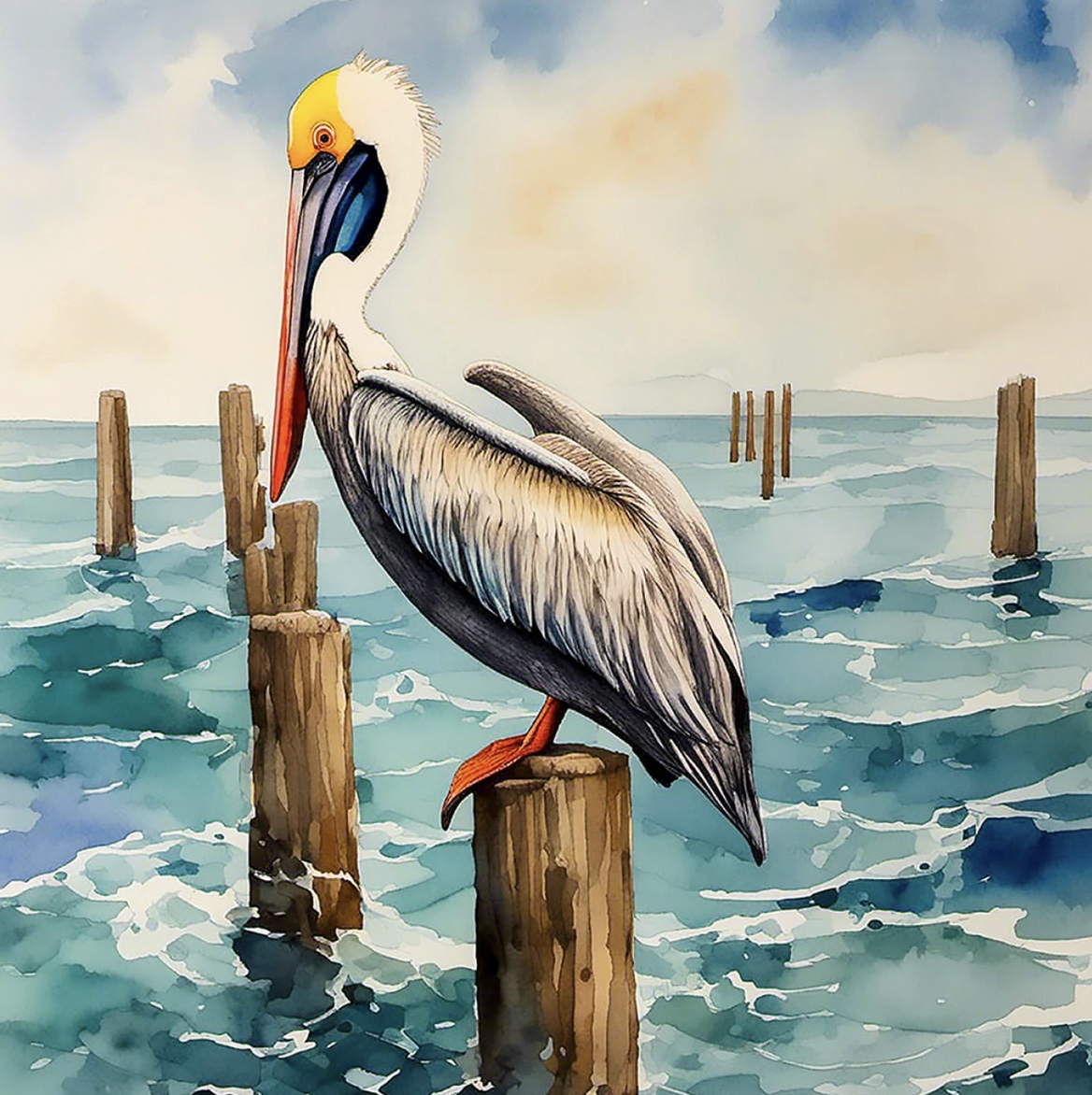 Painterly Pelican Panel 16 x 16 inch , Digitaldruck mit Pelican.