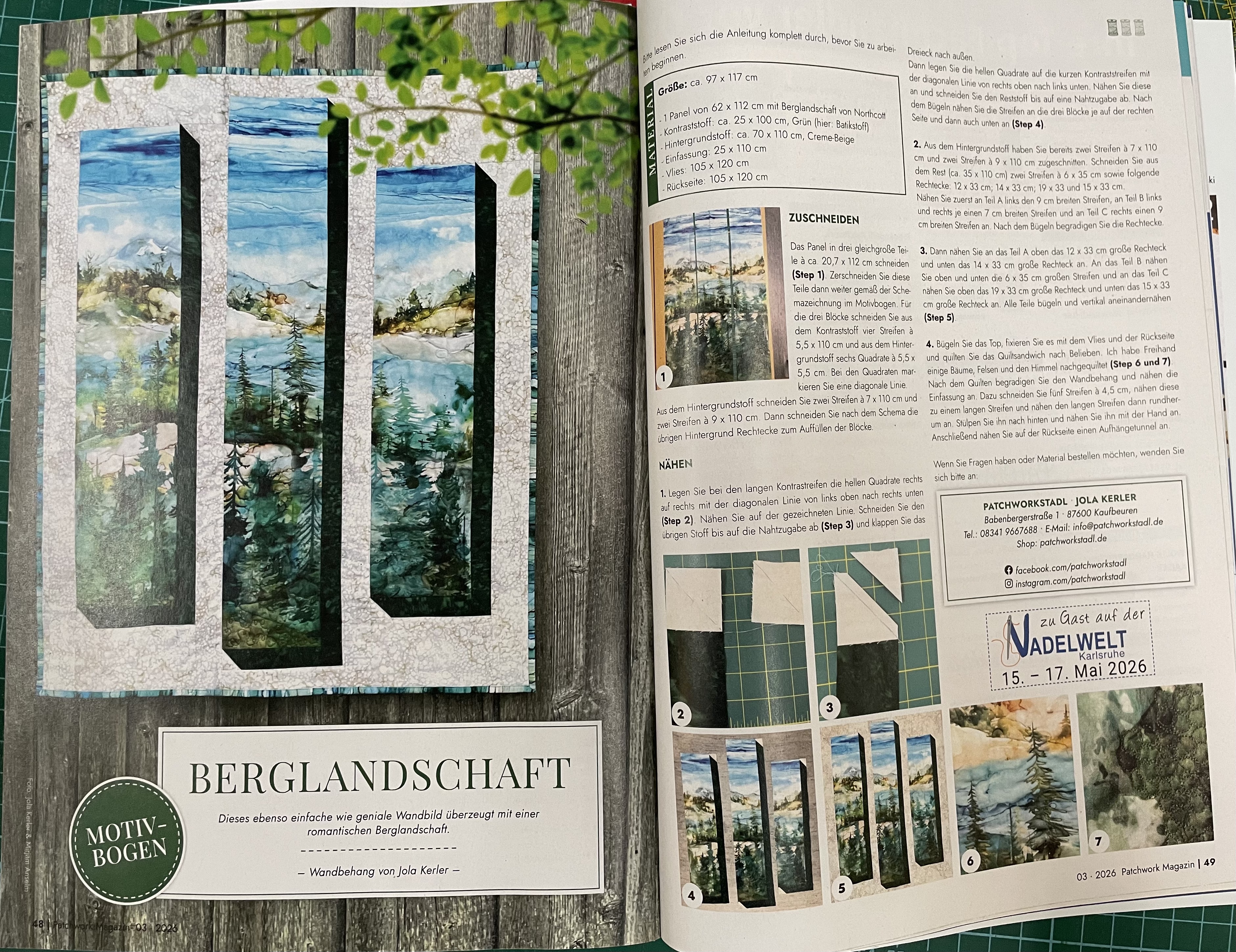 Patchwork Magazin. Drin auch unser Wandbehang Berglandschaft als Anleitung. Materialpackungen im Shop.