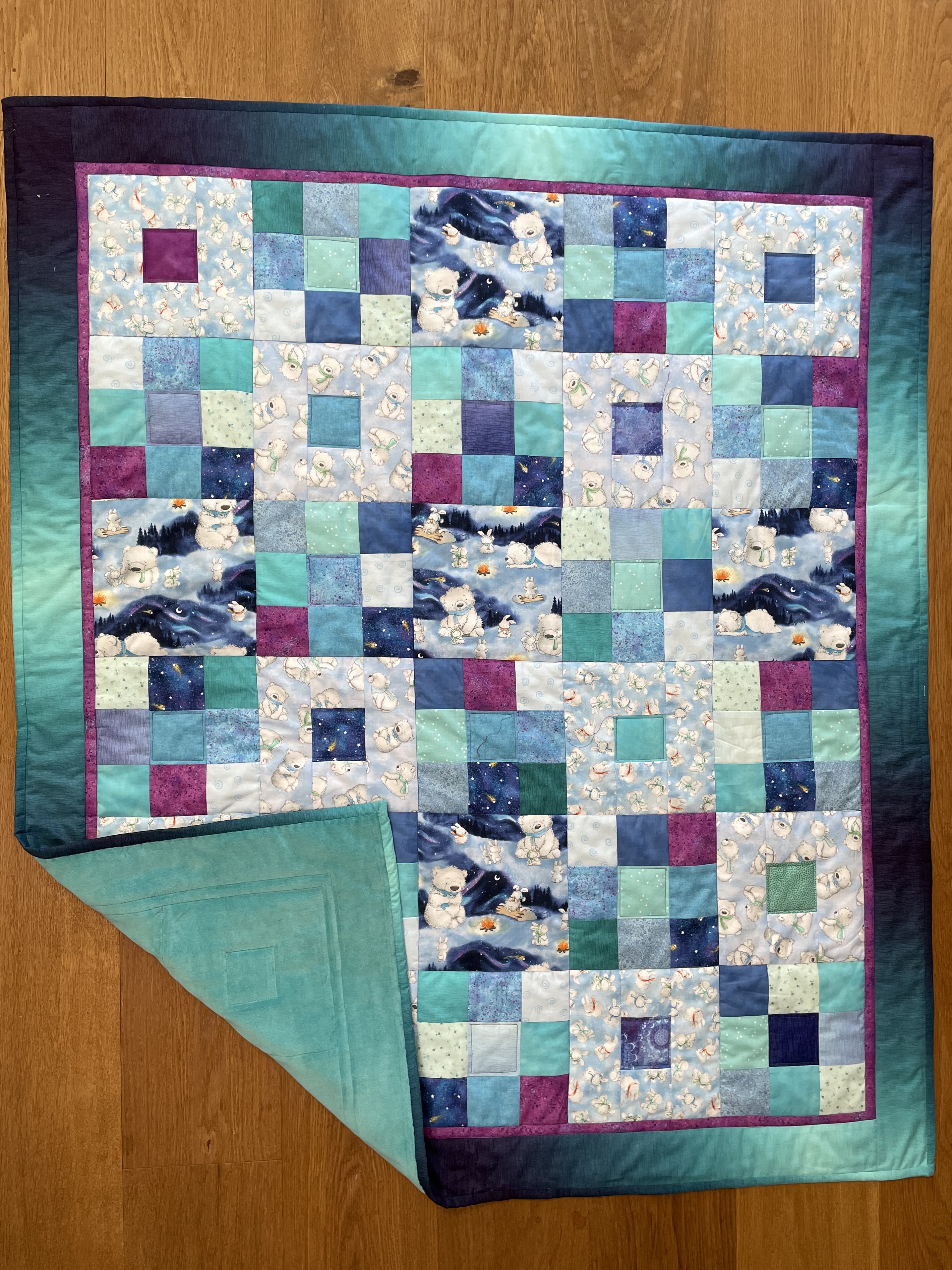 Fertig genähte Patchworkdecke Eisbär 120 x 138 cm