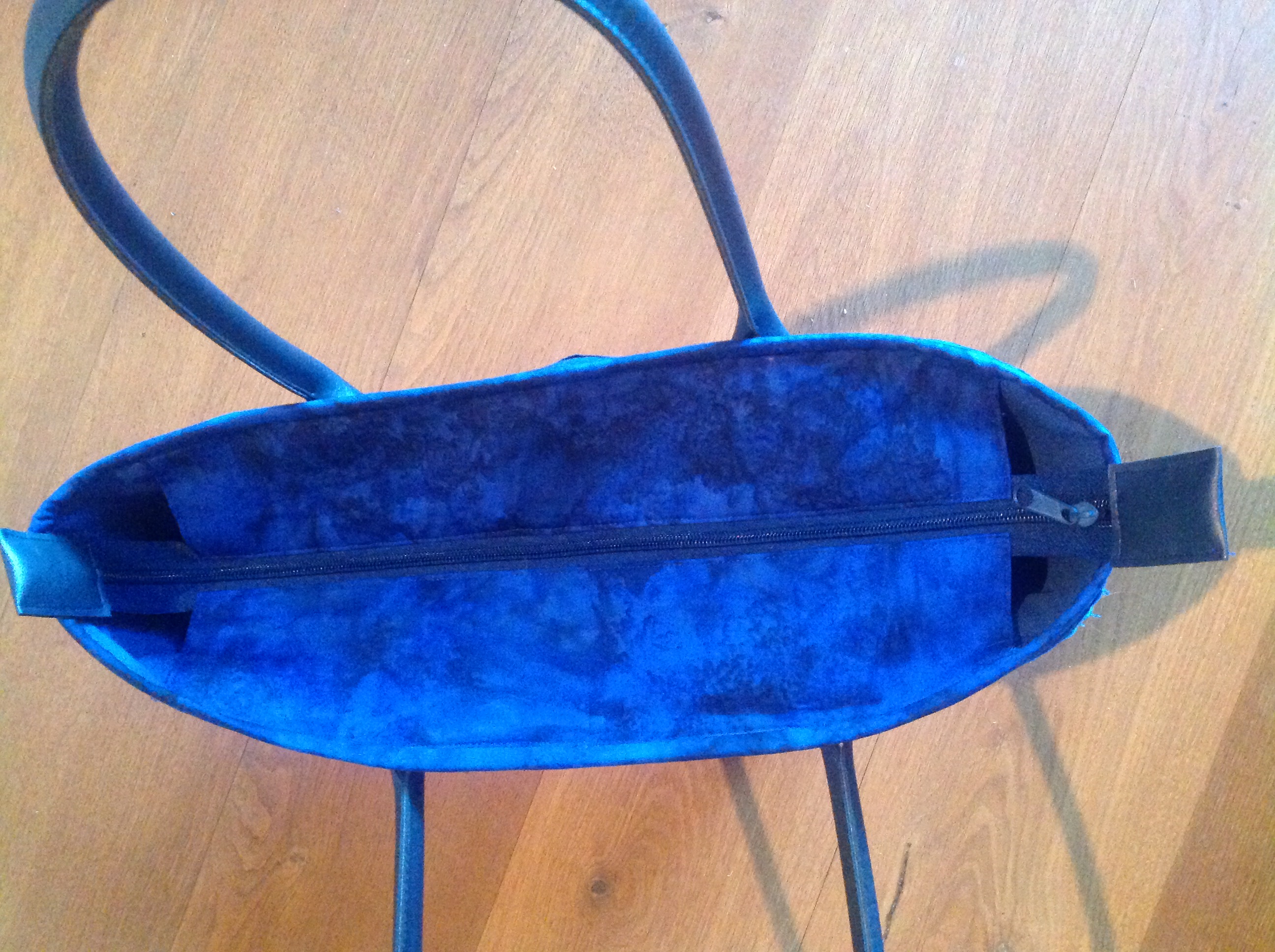 Die Materialpackung für die Tasche "Rainbow" besteht aus: Batik Streifen diagonal geschnitten, Matildas Own Taschenvlies, Futterstoff, Reißverschlüsse und elegante Taschengriffe zum Annähen, Stoff für die Blume und eine Anleitung mit Schnitt.