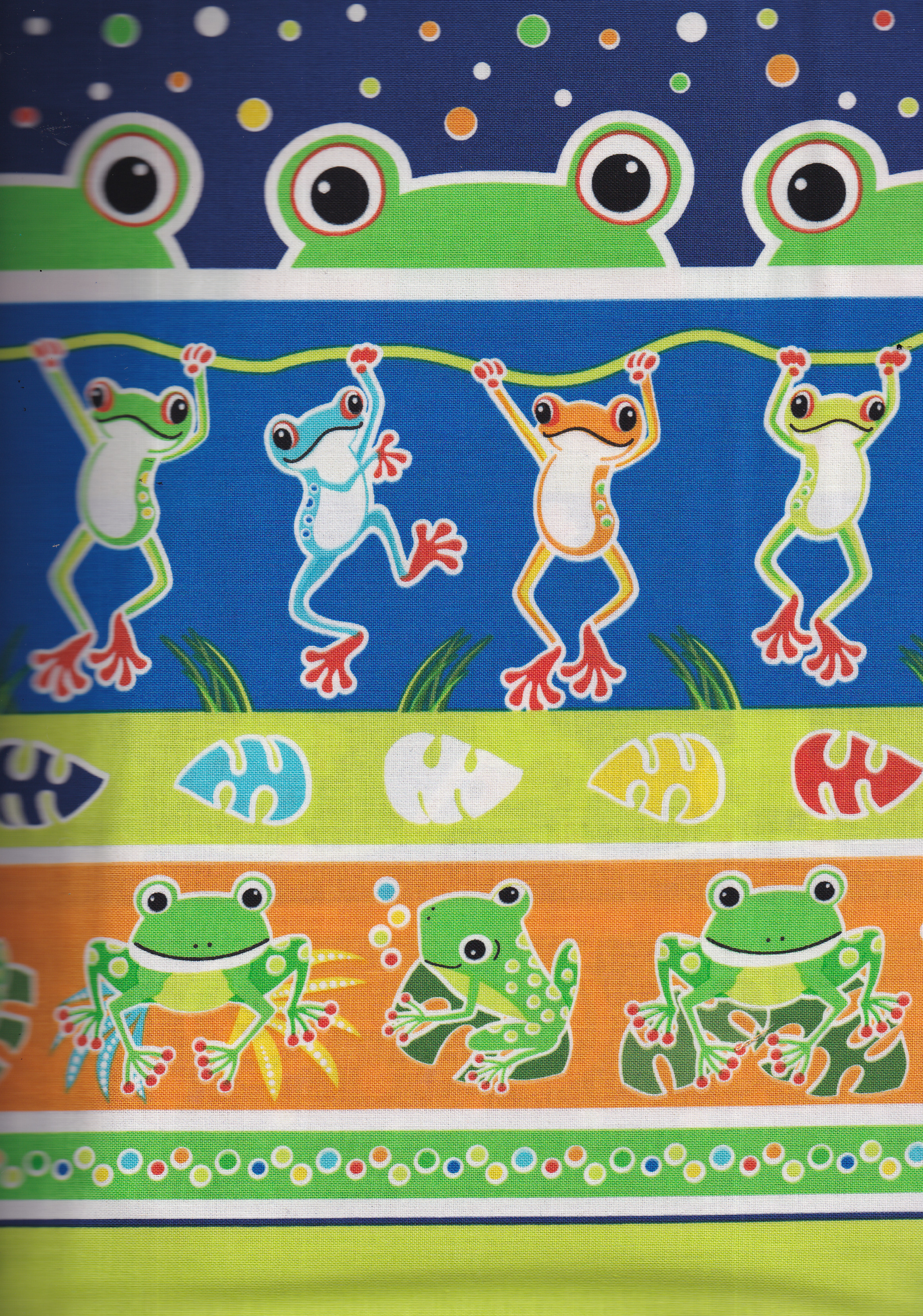 Materialpackung für einen kleinen Rucksack/Turnbeutel mit allen Stoffen, der benötigten Kordel und einer Anleitung. Einige Farben des Froschstoffes leuchten in der Dunkelheit
