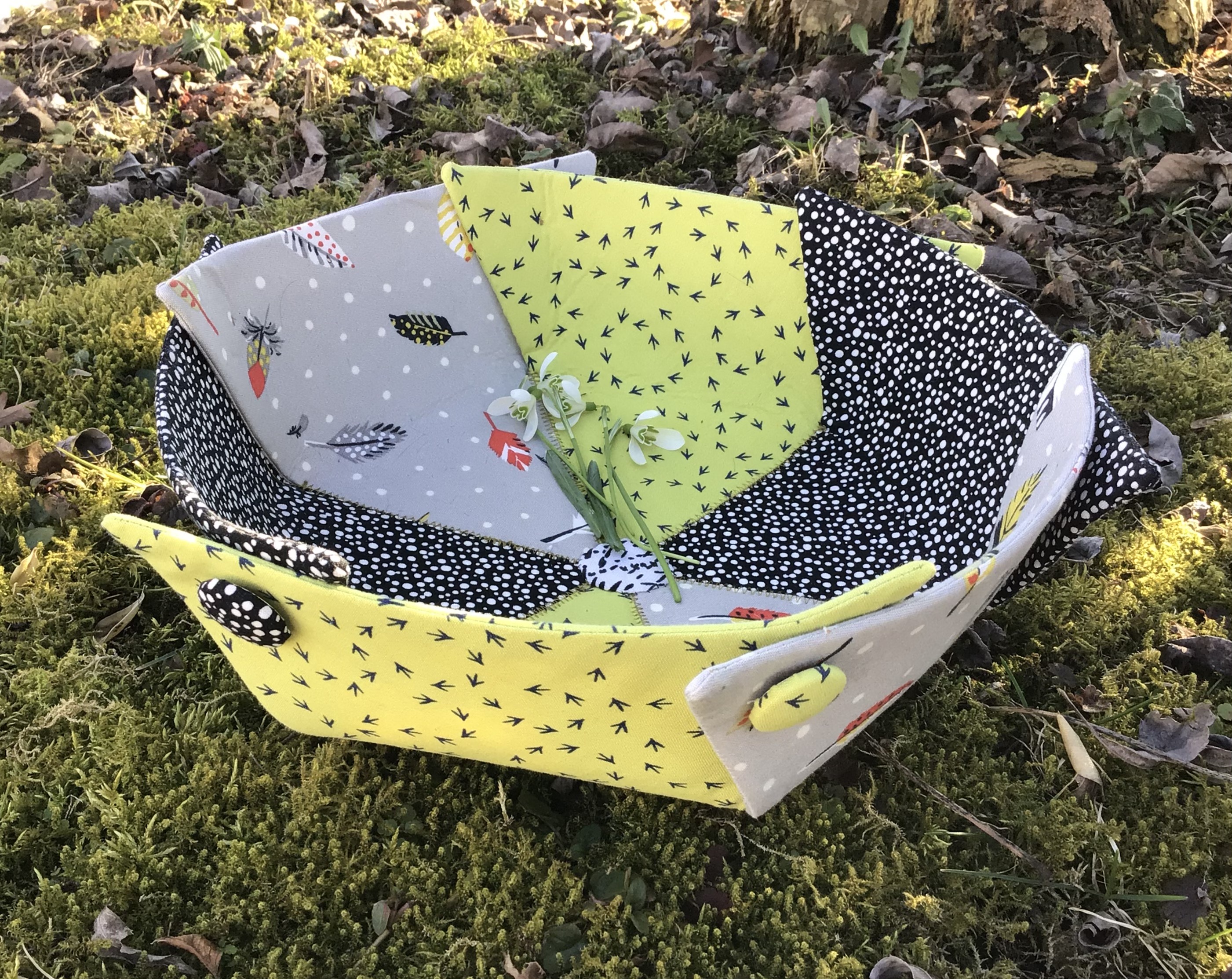 Die Materialpackung besteht aus 3 Stoffen, Matildas Own Taschenvlies, Vliesofix und einer Anleitung. Die Knöpfe sind nicht in der Materialpckung enthalten. Man kann diese extra bestellen.