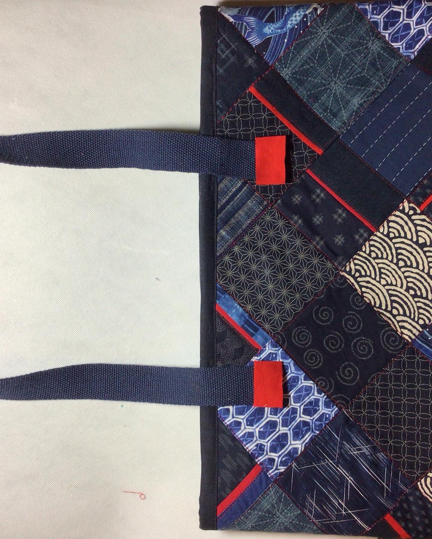 Genähte Tasche "Purple" in der Größe 32 x 42 x 11 cm, Japanische Stoffe, Henkel mit Clip.Taschenhenkel mit Clips können, diese kann man vor dem Waschen abnähmen.