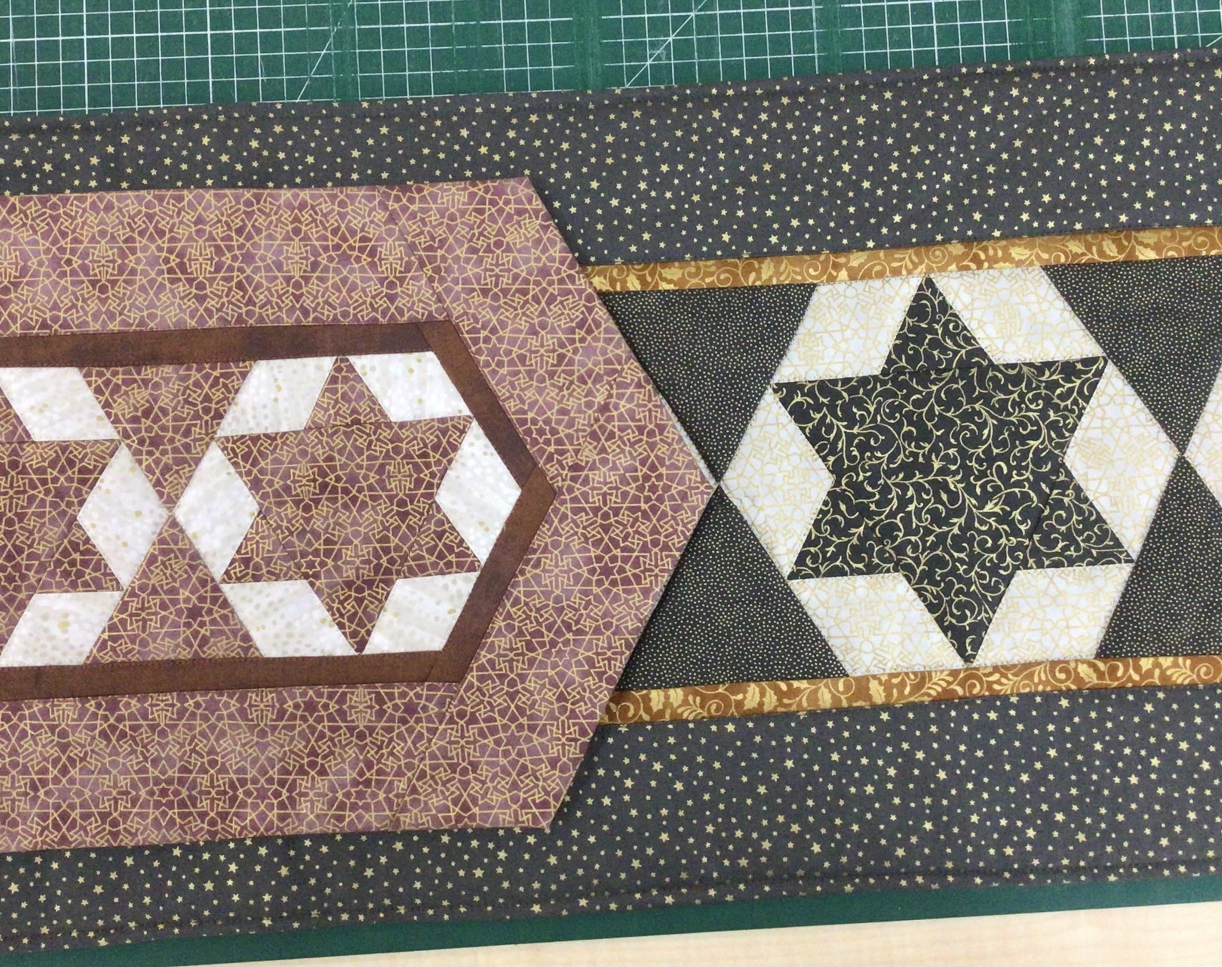 Diese Decke ist mit kleineren Sternen genäht als die schon bekannte Tischläufer Noel! Die Materialpackung besteht aus Altrosa/ Mauve-Gold, Creme Stoff fürs Top, dem Vlies 249, einen Rückseitenstoff und einer Anleitung.