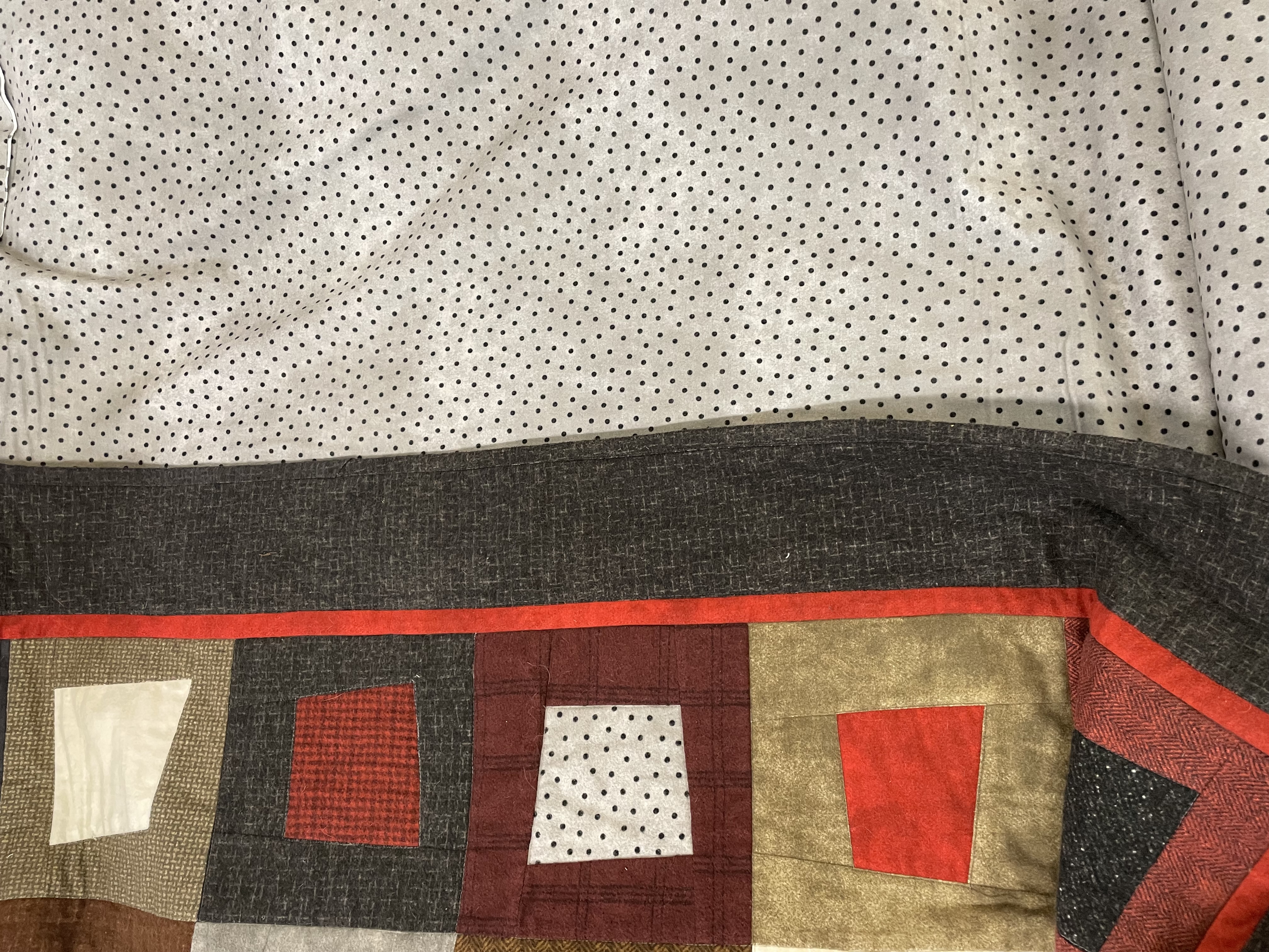 Patchworkdecke-Kuscheldecke/ Off Square/ Grau-Rot ca.149 x 189 cm/ Materialpackung für Top