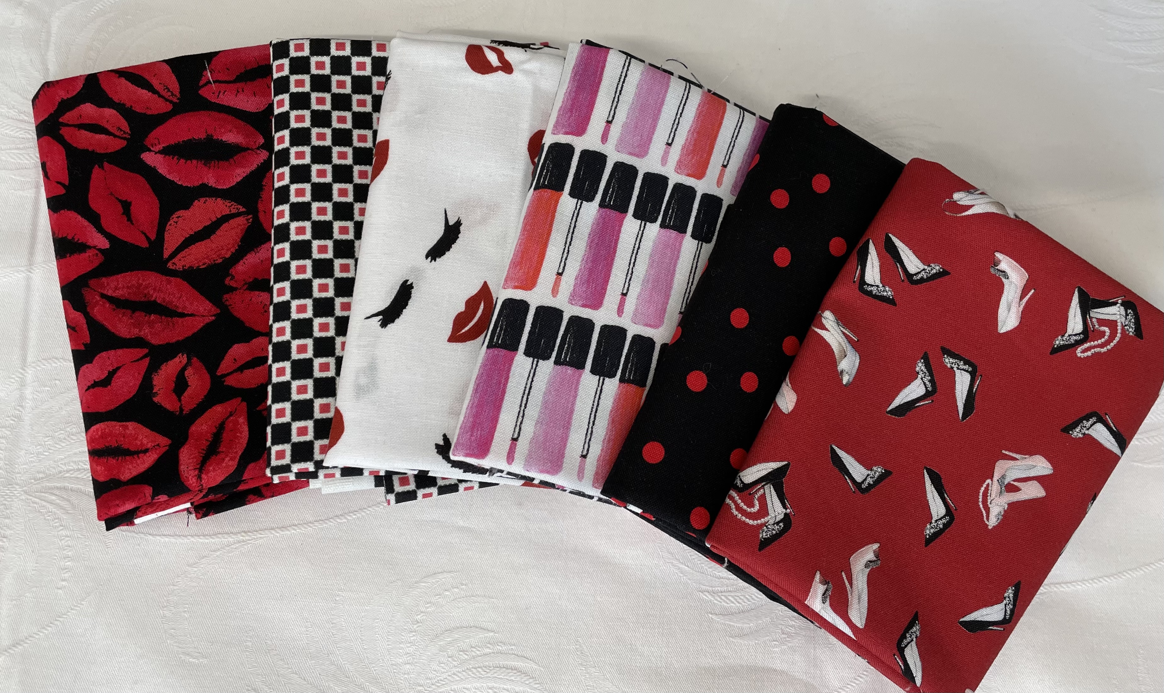 6 FQ zu je 50 cm x 55 cm mit Schuhen, Lippen, Lippenstiften.