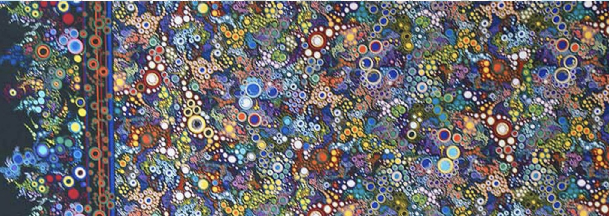 Patchworkstoff mit verschiedenen großen Kreisen in Multicolor mit den Farben Rot, Weiß, Gelb, Blau, Lila und Grün auf Schwarz.Meterware, Menge ab 30 cm möglich, der Preis bezieht sich auf den laufenden Meter.