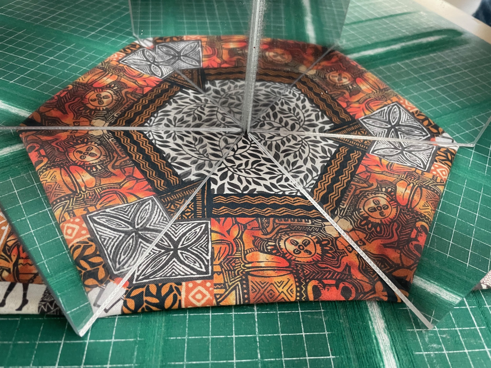 Patchworkstoff in Braun-Rost mit Afrikanischen Motiven. Auch interresant für kaleidoskop Quilts.