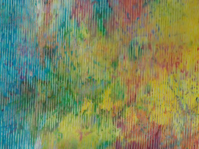 Bali-Batik Stoff in Bunt mit Strichen.