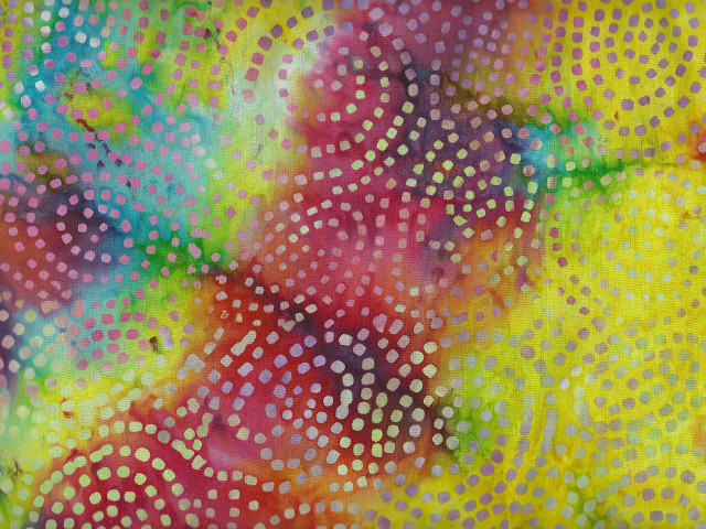 Bali-Batik Stoff in Multicolor mit Kreismuster.