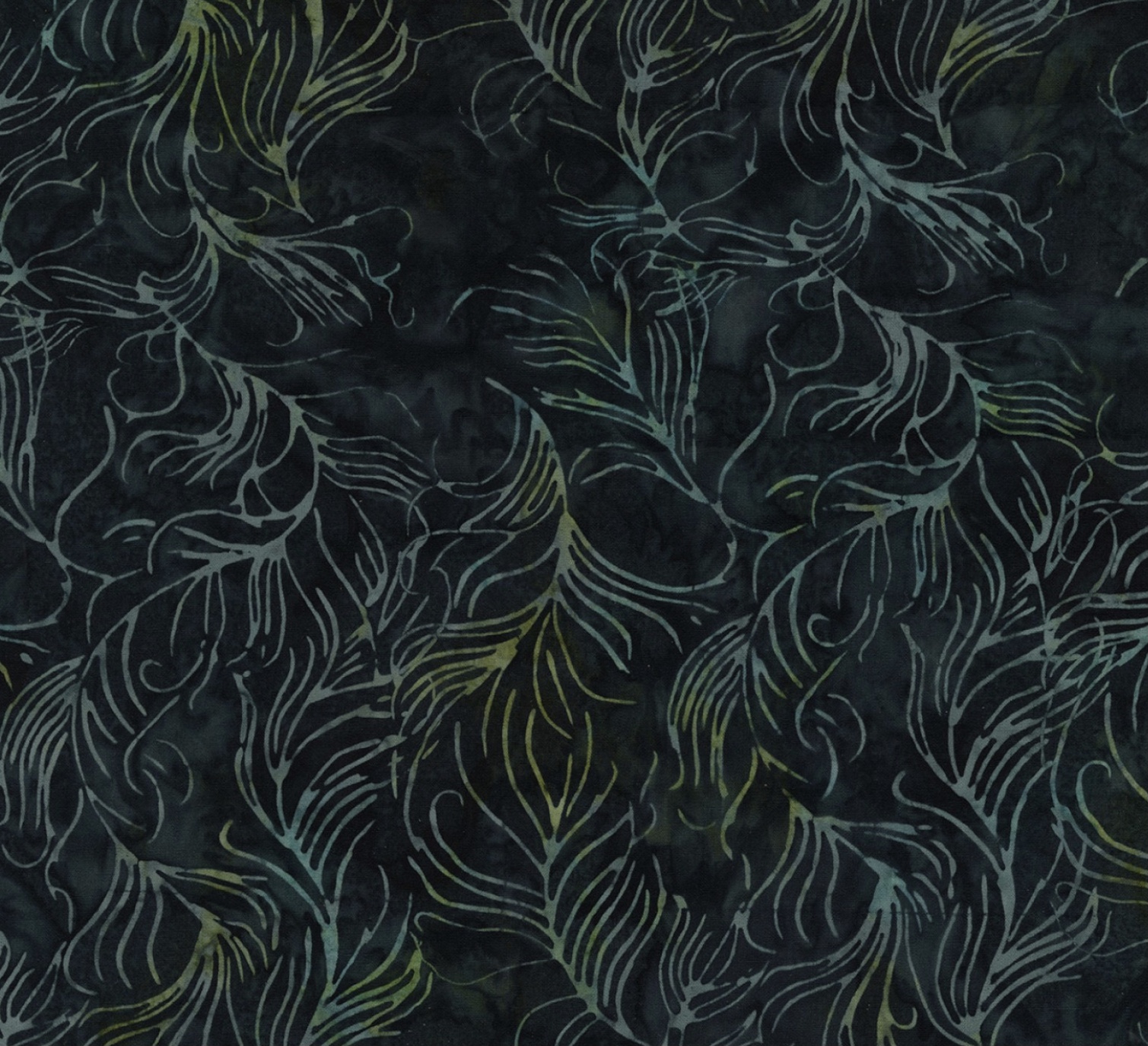 Tonga Batik in Nachtblau/Anthrazit mit Federn.