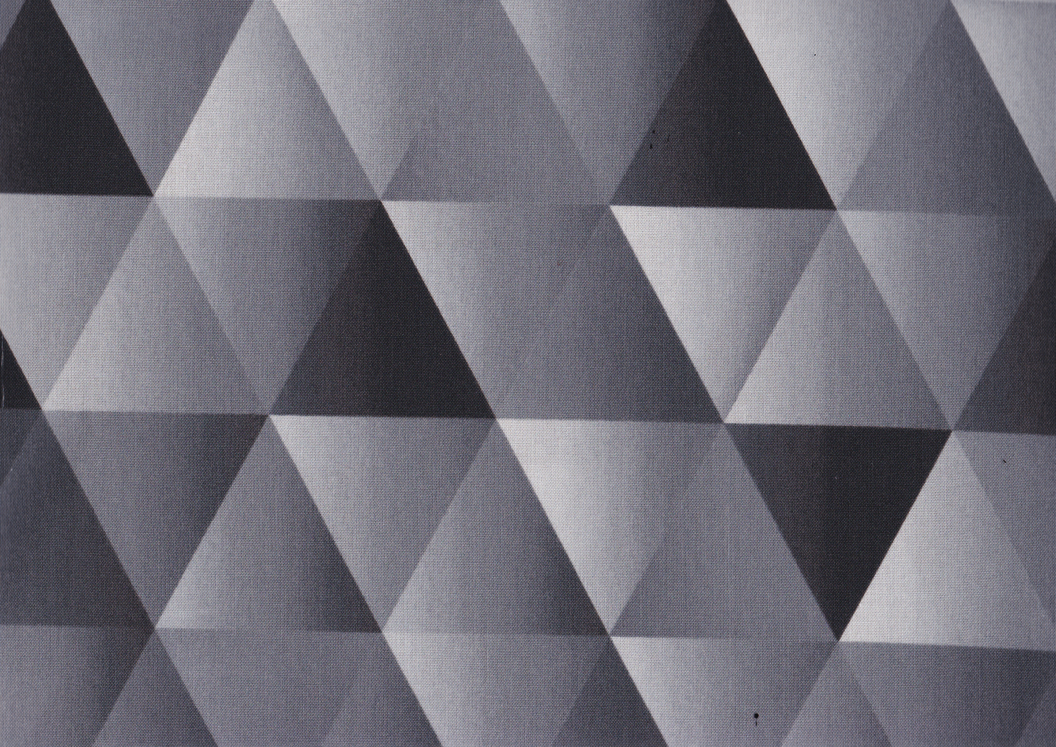 Patchworkstoff in sehr guter Qualität mit großen Dreiecken im Farbverlauf von Schwarz, Grau, Hellgrau. Die Seitenlänge der Dreiecke ist ca. 6,5 cm.