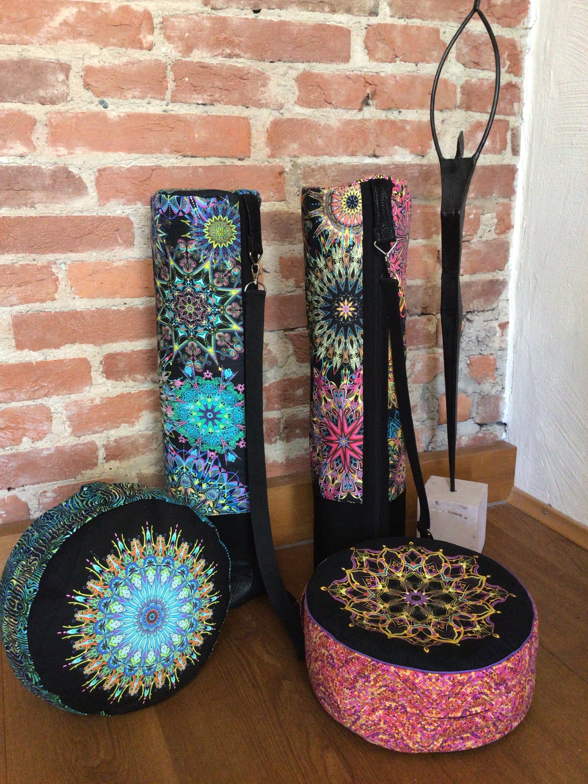 Patchworkstoff mit Mandalas in Multicolor. Musterwiederholung alle 60 cm.