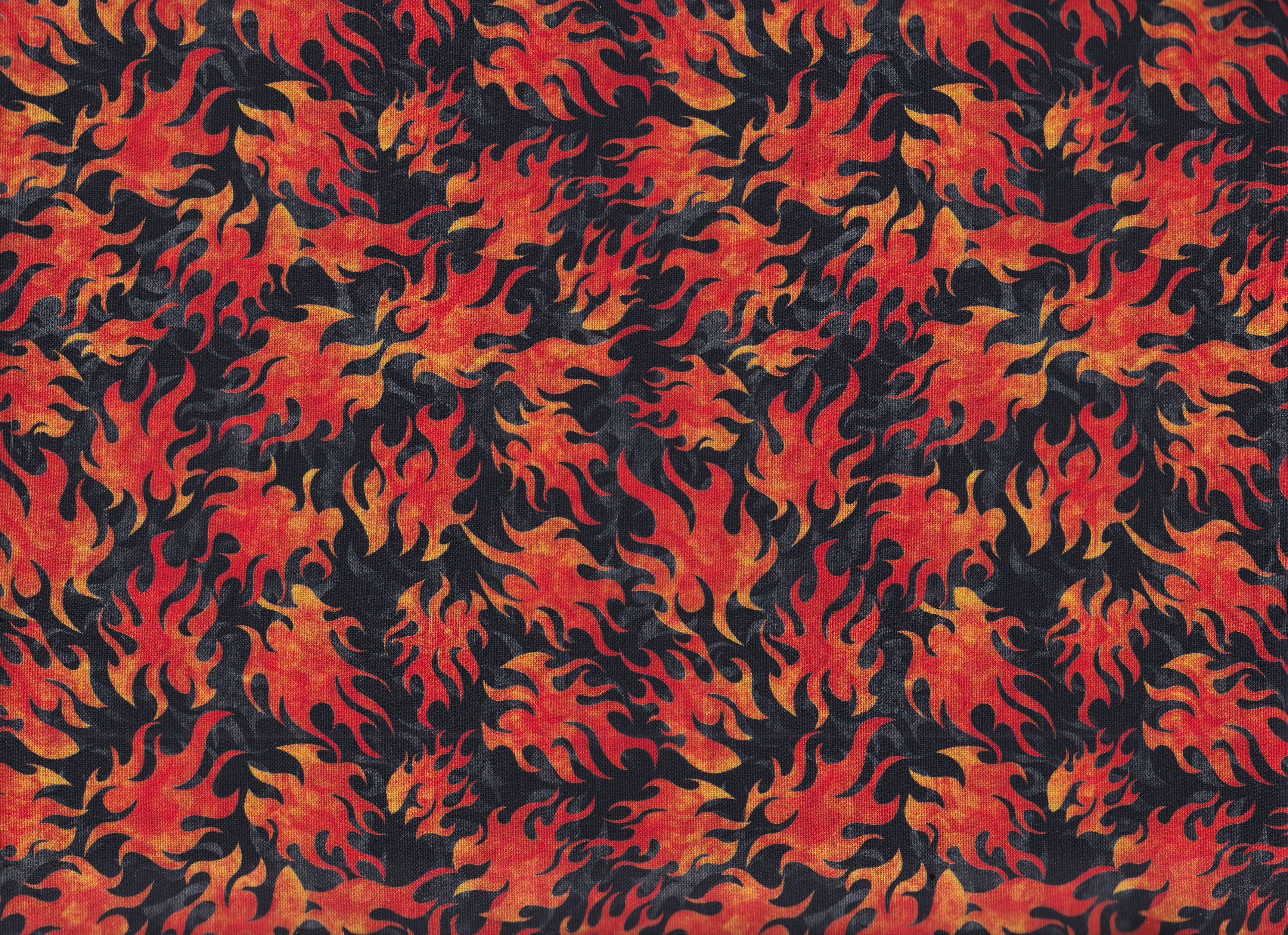 Patchworkstoff in Schwarz/Grau mit einem Flammen-Muster.