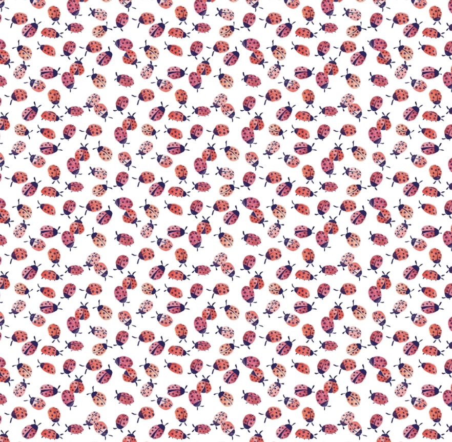 Patchworkstoff in Weiß mit kleinen Marienkäfer.