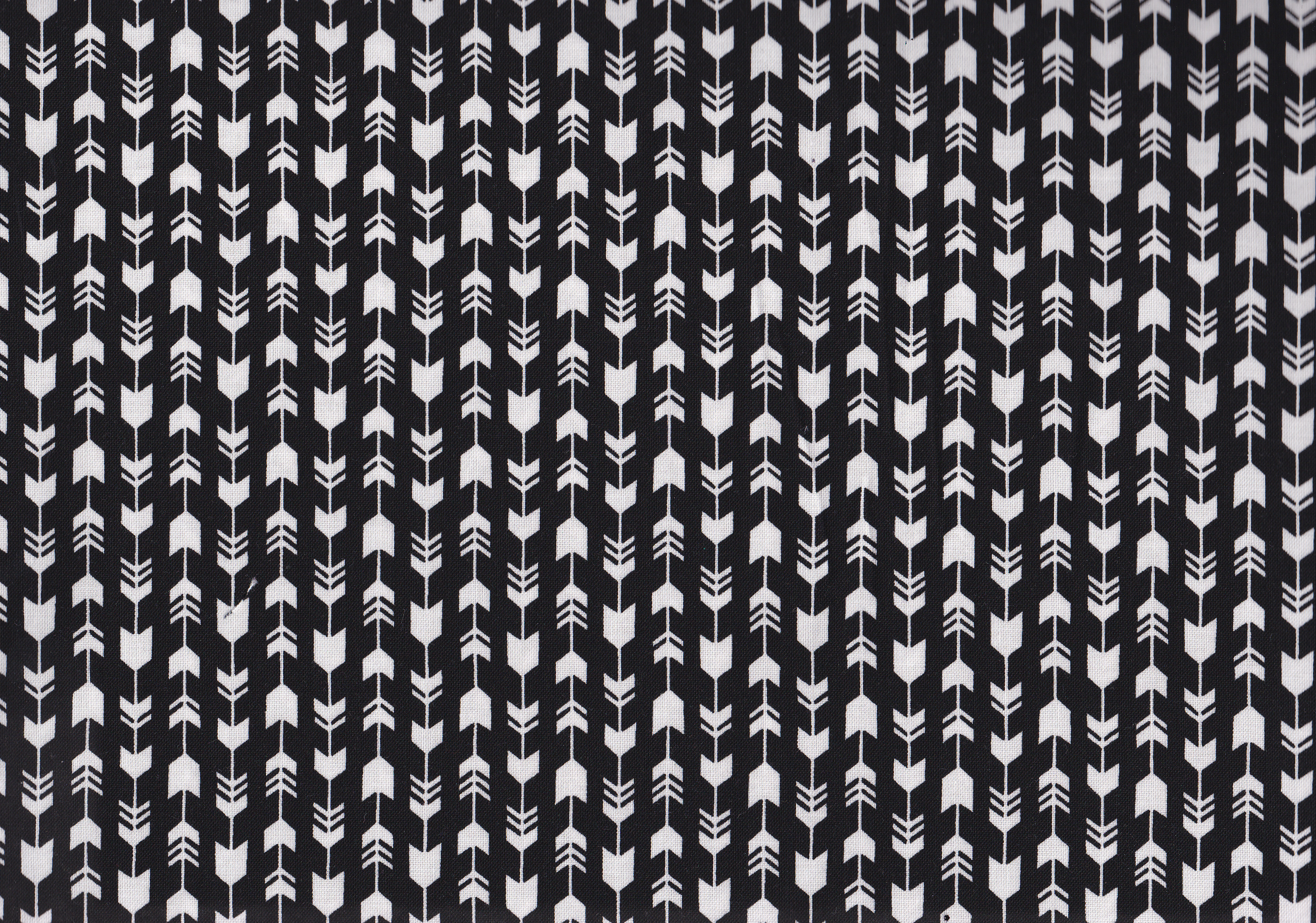 Patchworkstoff in Schwarz mit weißen Pfeilen.