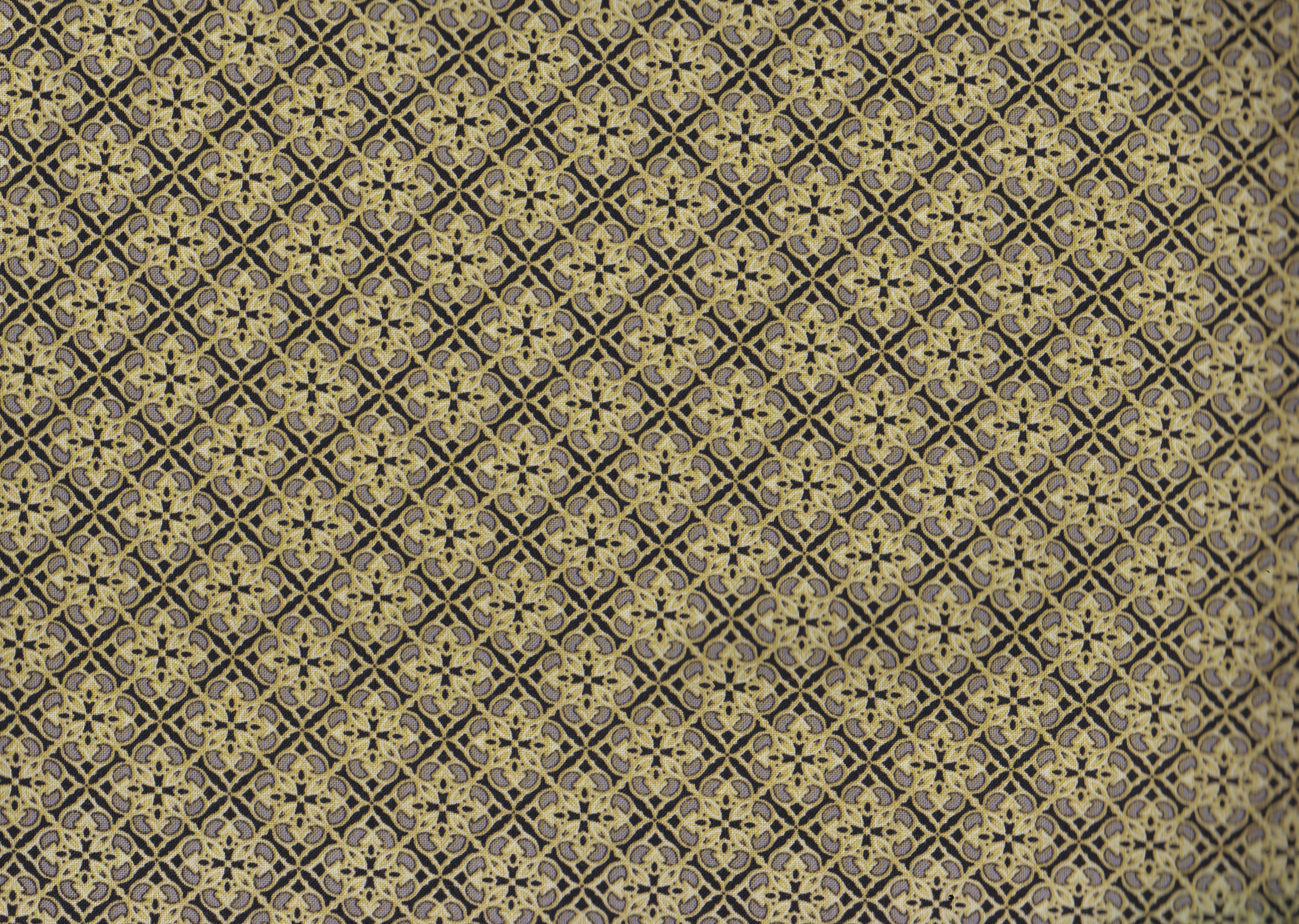 Patchworkstoff in Schwarz mit gelb-grünem Muster.