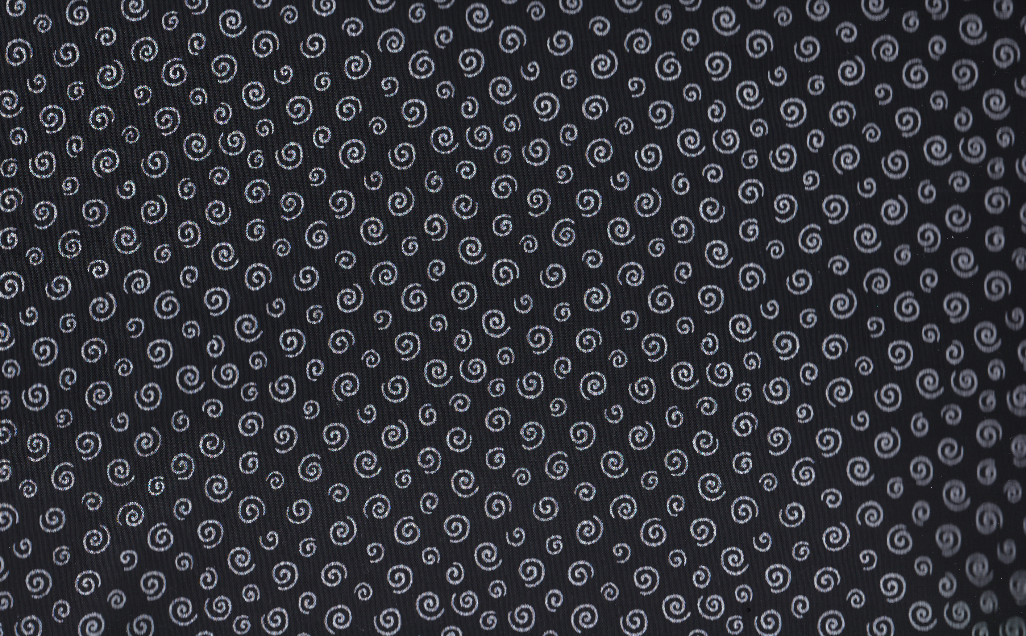Patchworkstoff in Schwarz mit kleinen Spiralen.