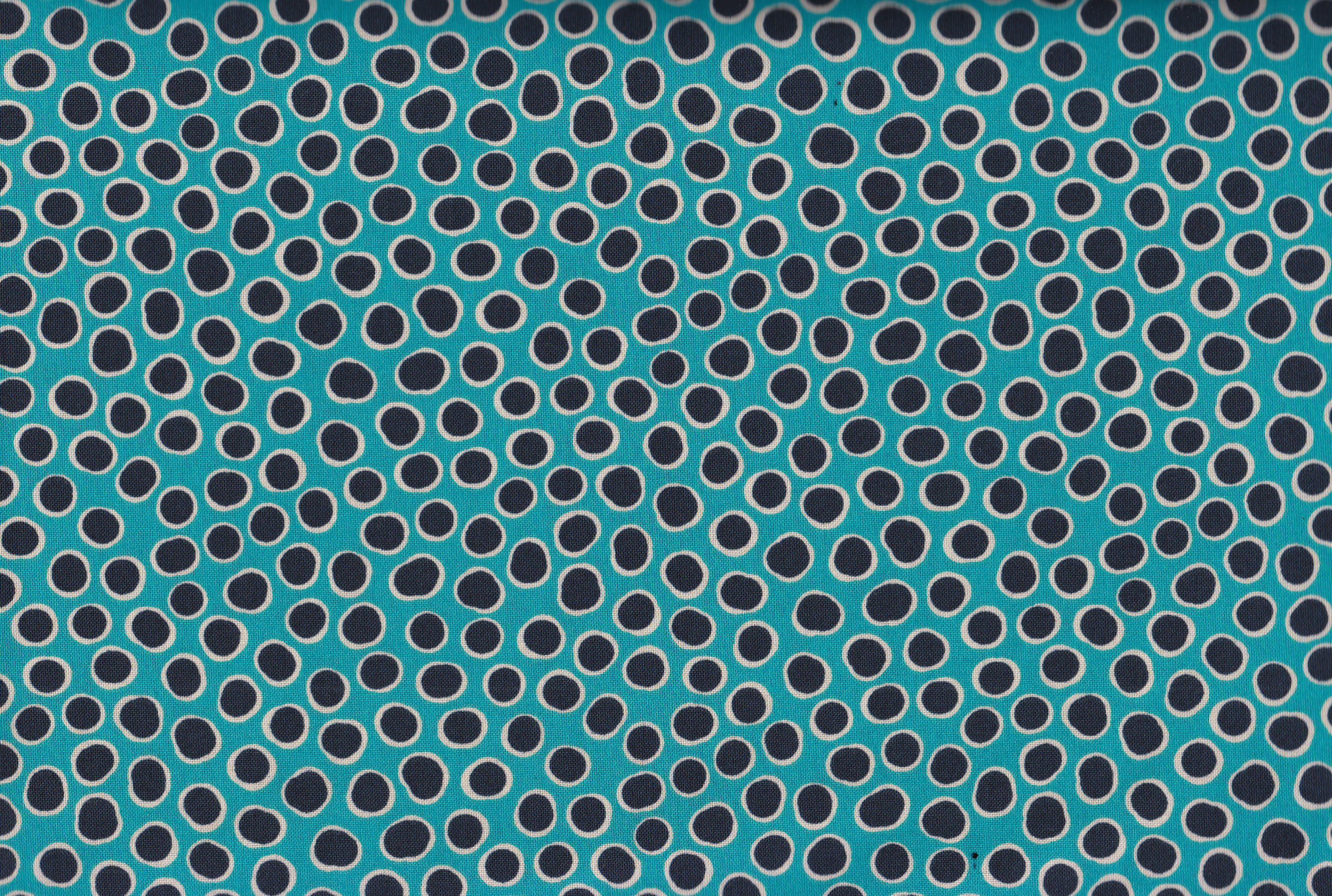 Patchworkstoff in Türkis mit Punkten in Navy.