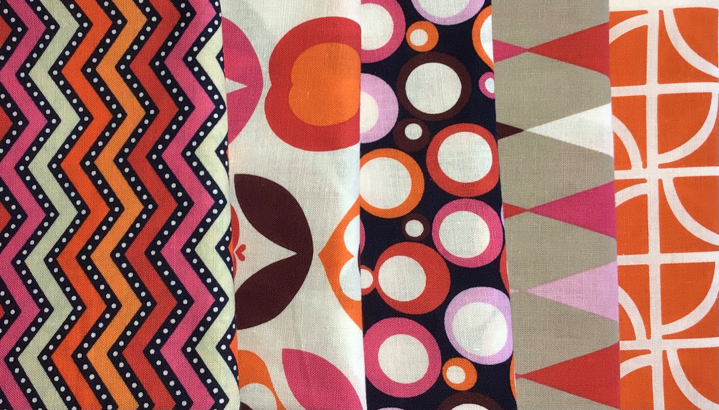 5 moderne Stoffe als FQ zu je 50 cm x 55 cm.
