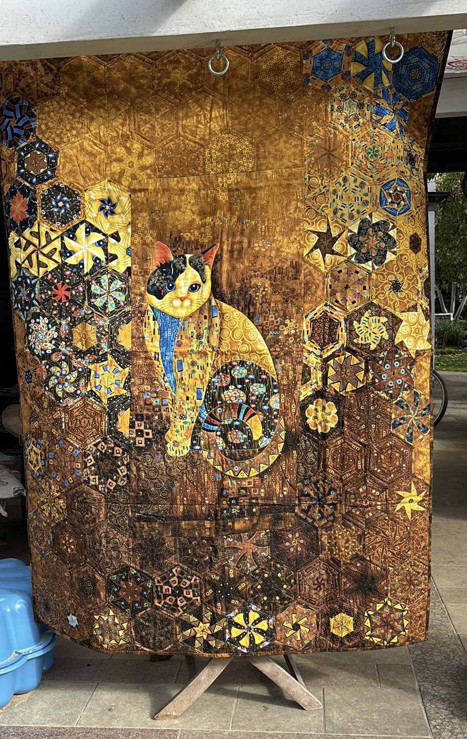 Patchworkstoff mit Katzenmotiv. Klimtart Stoffe mit Golddruck. Panel 60 x 110 cm. Auch toll für Wonderblock/ Kaleidoskop