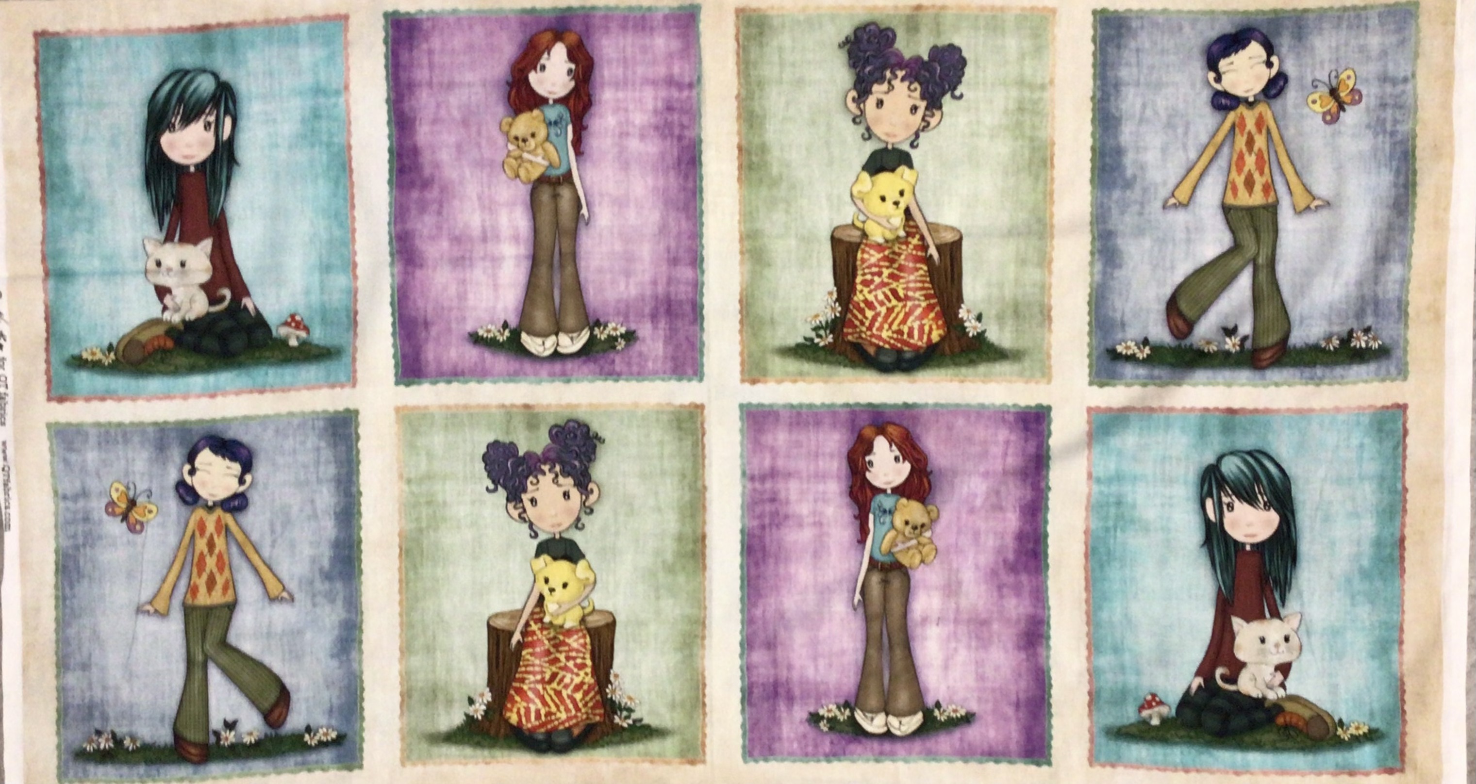 Patchworkstoff als Paneel mit verschiedenen Mädchen Motiven.