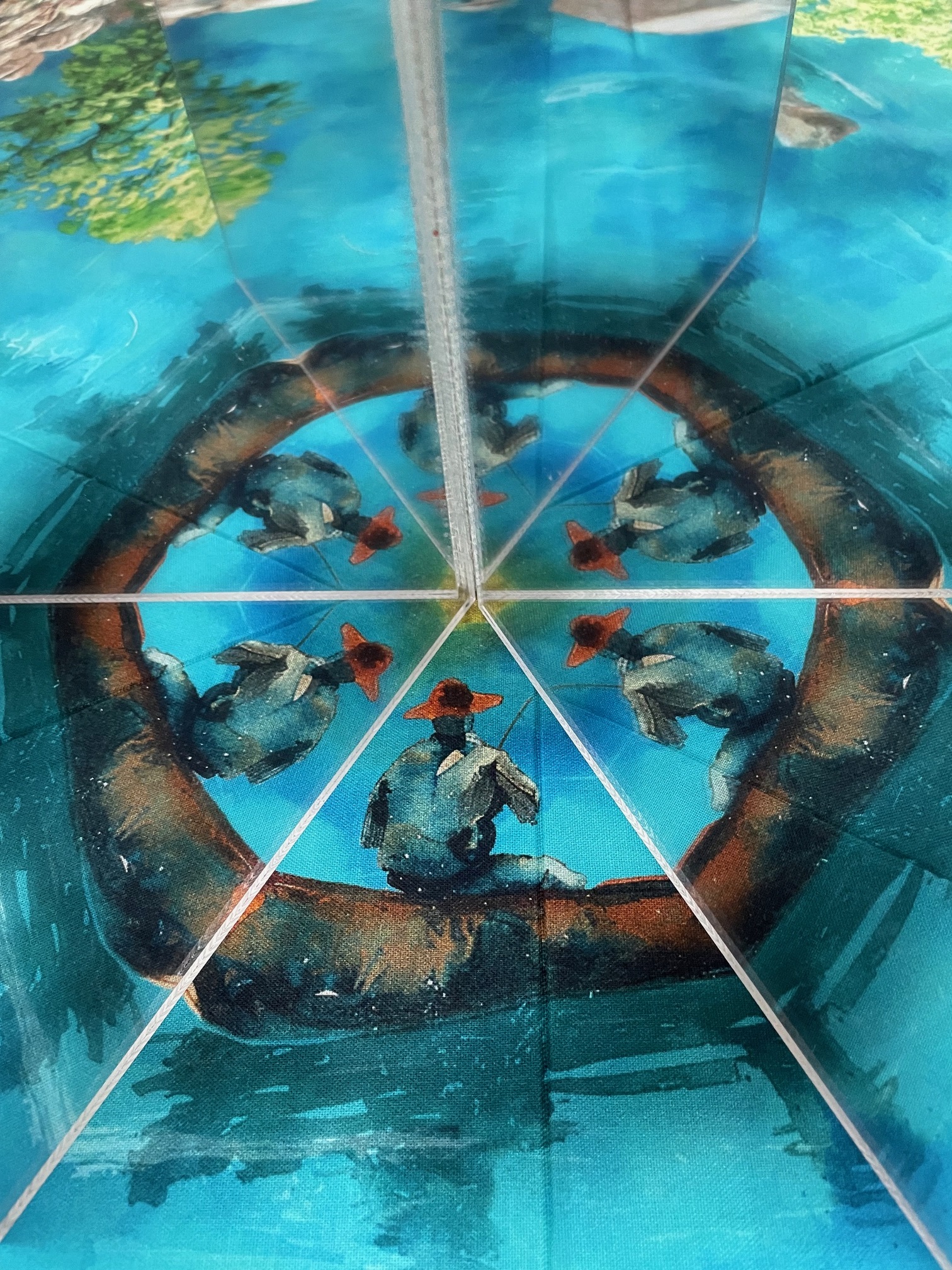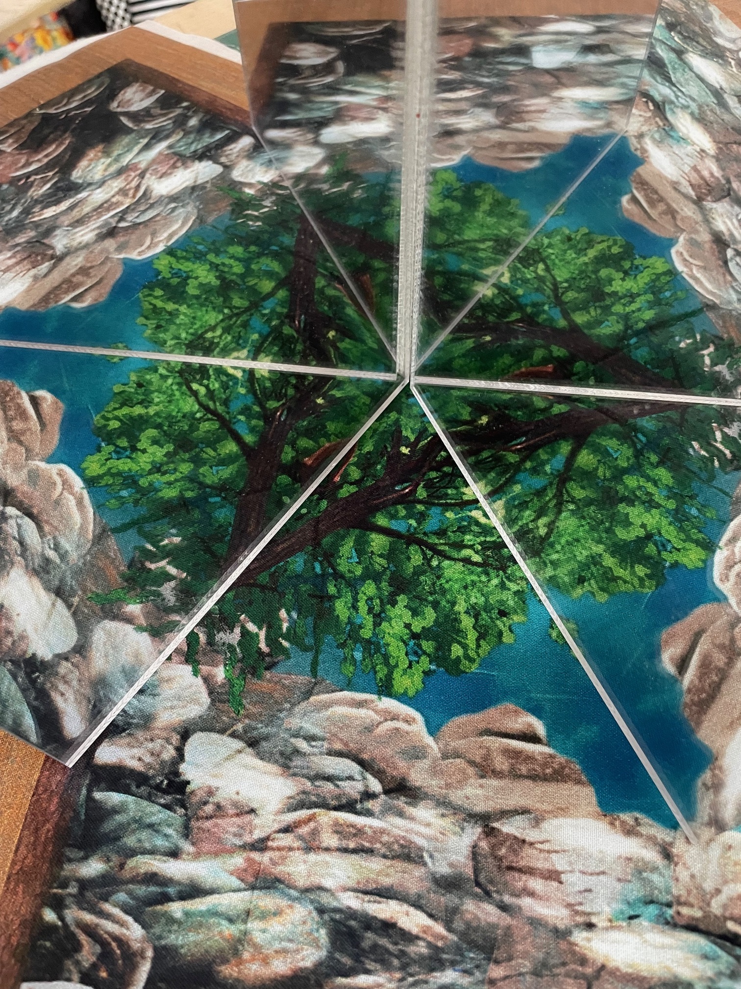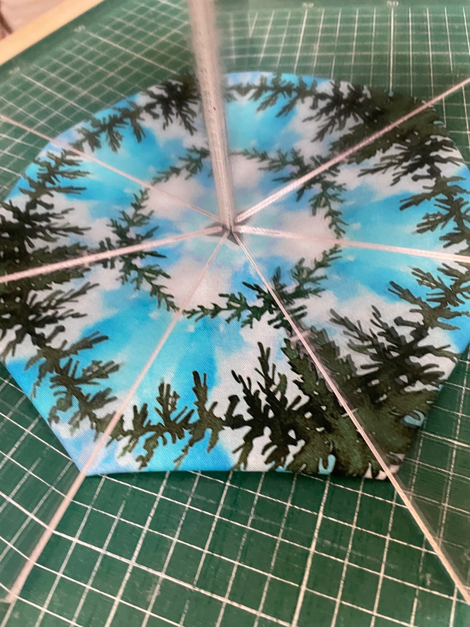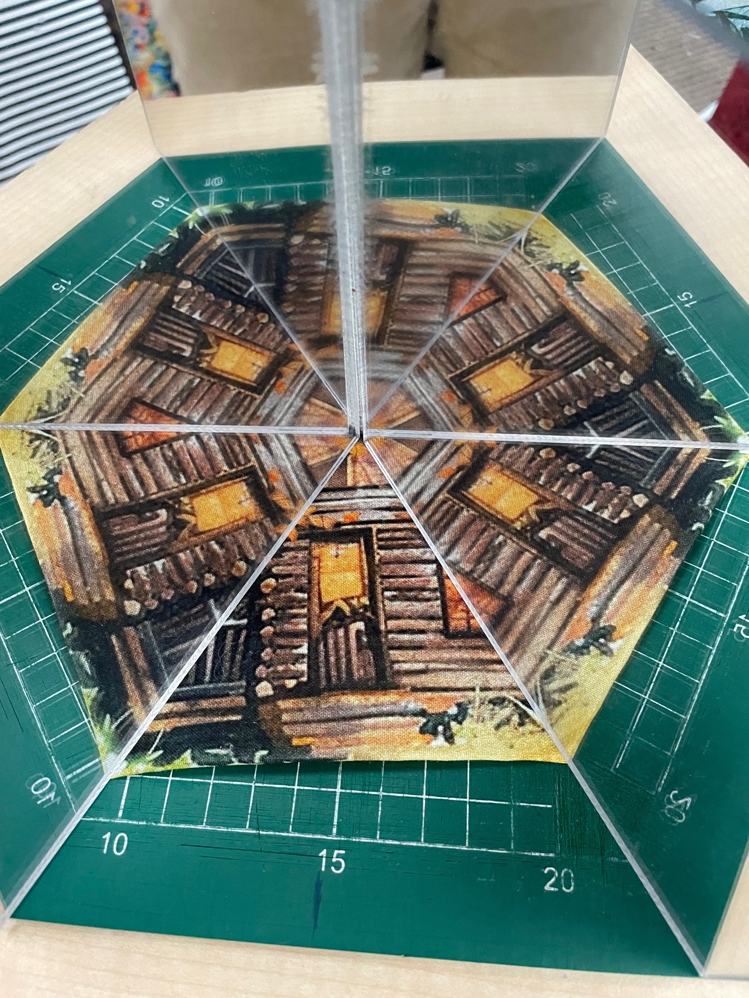 Patchworkstoff mit Wald, Berge, Seemotiv. Gut geeignet für Fenstertechnik Quilts oder Wonderblock/ Kaleidoskop Quilts. Tolle Farbqualität mit Digitaldruck hergestellt.