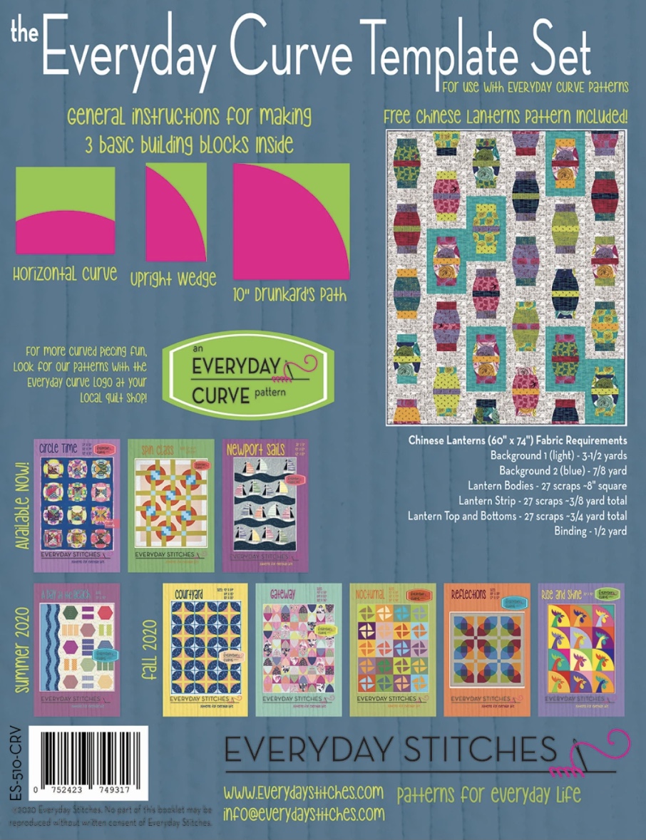 Mit diesem Lineal können Sie jedes Muster mit Kurven schneiden und nähen. Inch lineal von Evryday Stitches. Dabei eine Anleitung wie man das Lineal benutzt auf english, auch für ein Quilt Chinese Laternen, und einigen Bilder mit Ideen für ein Quilt mit Runden Formen.